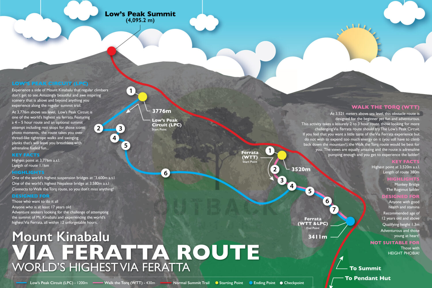 Embark on a thrilling 2-day, 1-night ascent to the summit of Mount Kinabalu (4,095m), paired with the Low’s Peak Circuit — the highest via ferrata in the world. Designed for adventurous and fit individuals, this journey combines a challenging high-altitude trek with an unforgettable traverse along cliffs, suspension bridges, and iron rungs built into the mountain face.