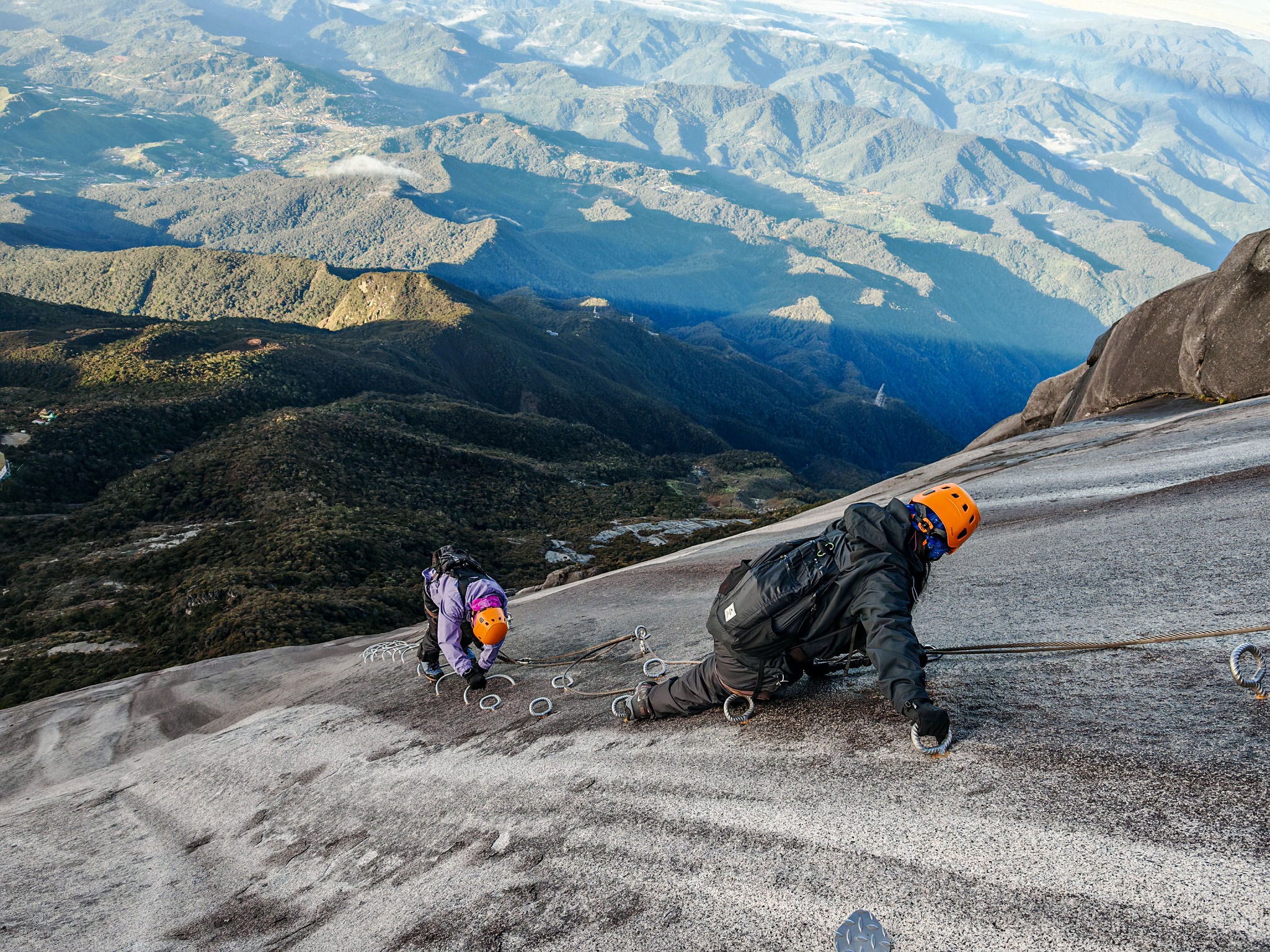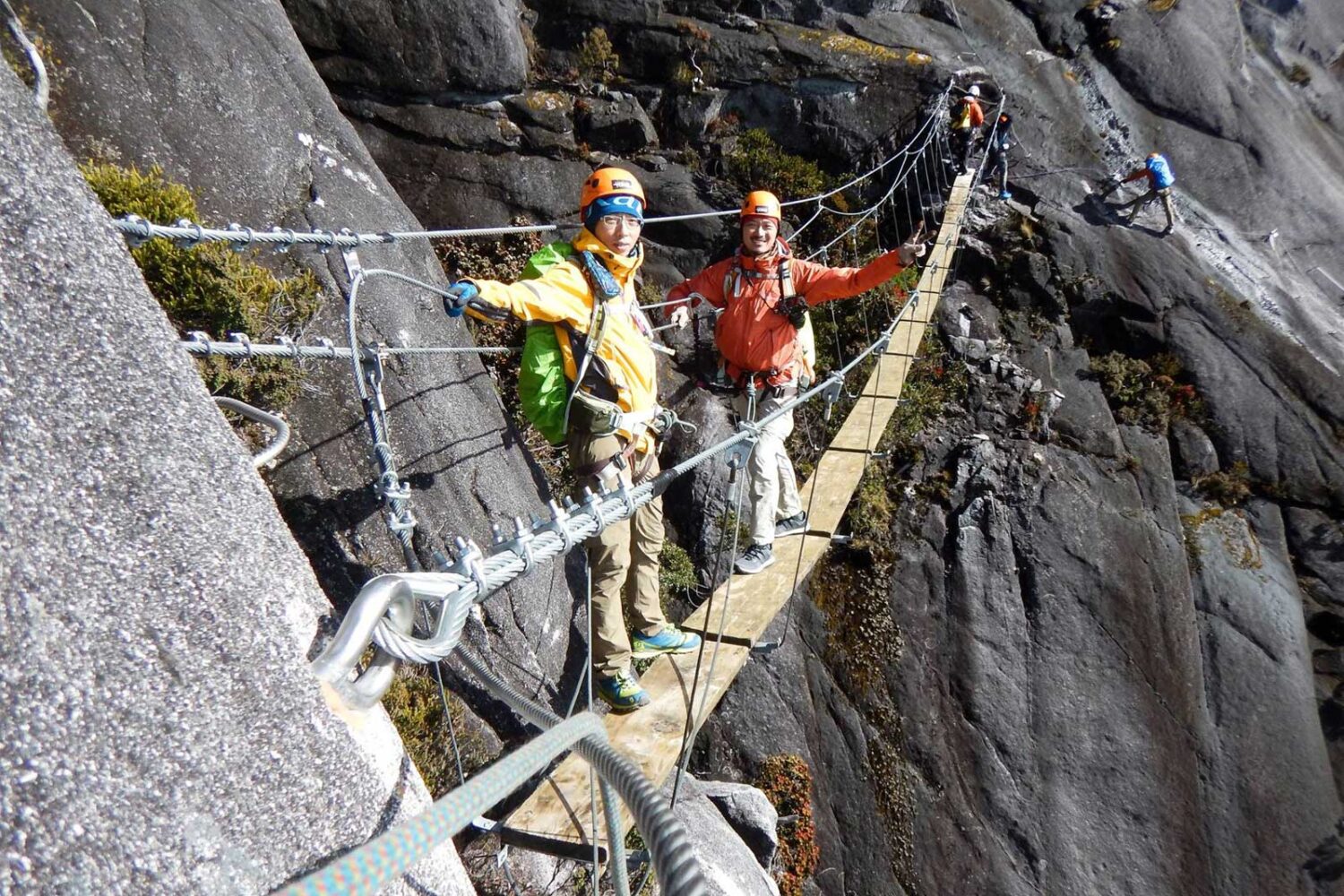 After taking in the spectacular views, you’ll descend to the 7.5 km point to meet your Via Ferrata trainer and begin the Low’s Peak Circuit (LPC) — an intermediate-level via ferrata route (French grade AD) that takes approximately 4 to 5 hours. This thrilling adventure takes you along narrow ledges, steel rungs, hanging bridges, and vertical drop-offs, offering unmatched views and an adrenaline-pumping experience high on the mountain face. Please note: climbers who miss the cut-off time will not be permitted to join the via ferrata.