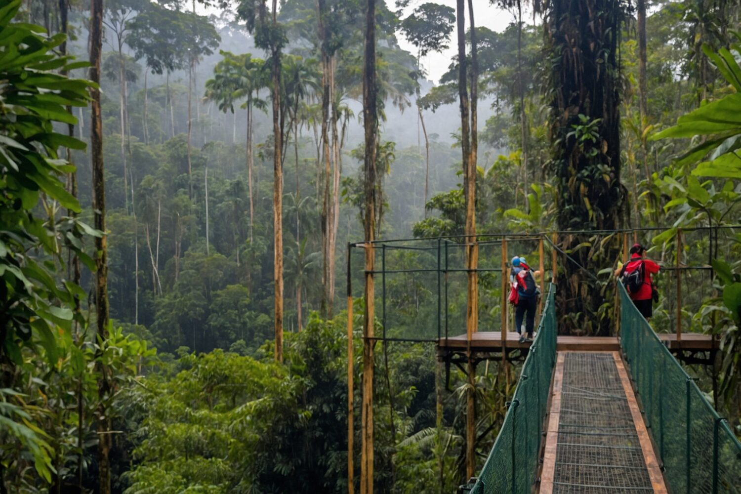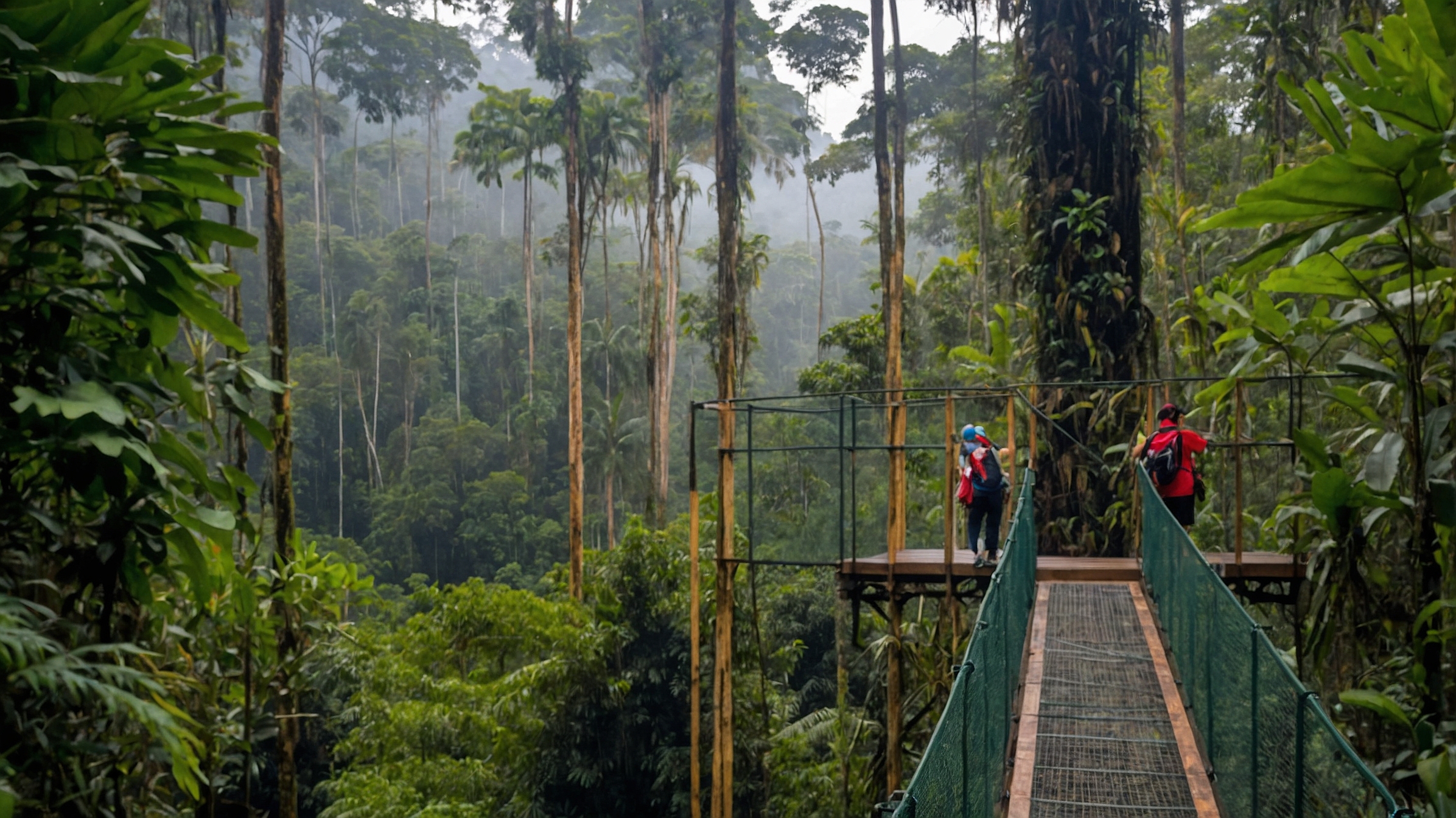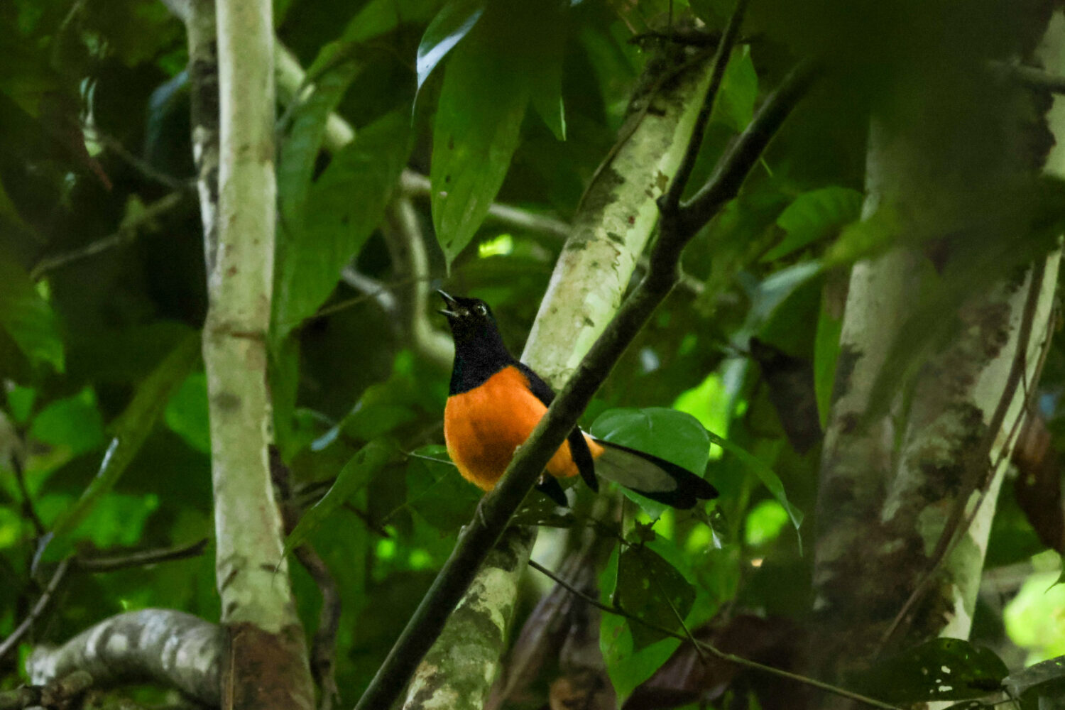 Morning trek to a rainforest waterfall. Afternoon guided walk or birdwatching. Evening night safari in search of rare species.